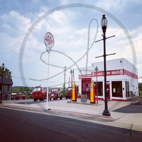 Cars on the Route and the restored circa 1934 Kan-O-Tex Station are located in Galena, Kansas along Route 66. This stop is also the home of "Tow Tater", the inspiration for the character "Tow Mater" in the Pixar movie, Cars. (The rusted 1951 International Harvester was mistaken as a tow truck, but is actually a boom truck.) A great place to stop and take photos!