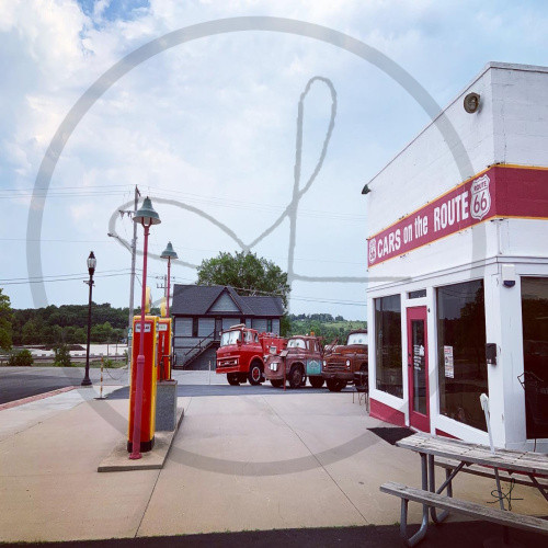 Cars on the Route and the restored circa 1934 Kan-O-Tex Station are located in Galena, Kansas along Route 66. This stop is also the home of "Tow Tater", the inspiration for the character "Tow Mater" in the Pixar movie, Cars. (The rusted 1951 International Harvester was mistaken as a tow truck, but is actually a boom truck.) A great place to stop and take photos!